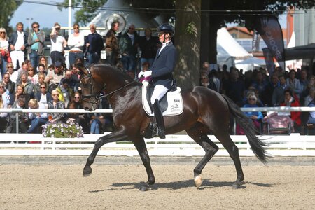 Im Viereck ging der Titel bei den fünfjährigen Dressurpferden an den westfälischen Vitalis-Sohn Valverde unter Eva Möller.