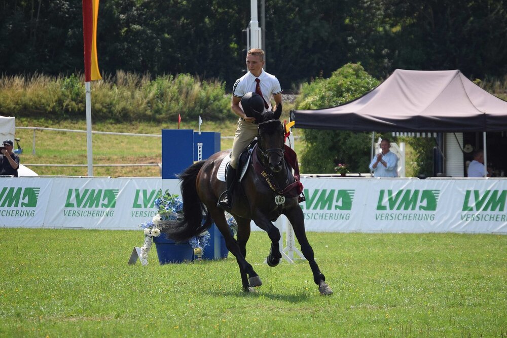 Foto: DSP-Springpferdechampion Eulenspiegel unter Colin Hackert (Steinbach)
