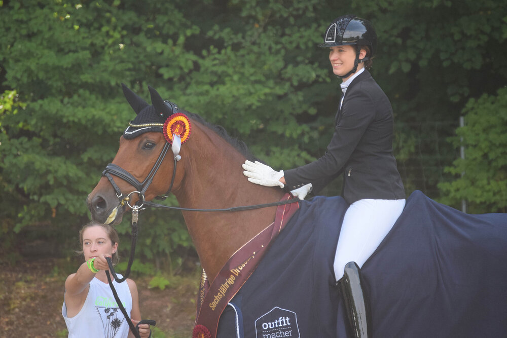 Der Morgen startete in Darmstadt heute mit der Finalprüfung im DSP-Championat der sechsjährigen Dressurpferde, gleichzeitig eine Qualifikation zum Bundeschampionat. Hier genügte PBM Cosmopolitan, vorgestellt von Anna Schöffner, ein zweiter Platz zum Titelgewinn. Der Concetto-Larimar-Sohn (DSP/BW) stammt aus der Zucht der PBM Pfefferle GmbH und steht in Besitz von Jan Smith. Bereits dreijährig machte der gangstarke Braune auf sich aufmerksam. So avancierte er 2017 zum Landeschampion in Tübingen und wenig später sicherte er sich auch den Titel in Nördlingen. Im Herbst des selben Jahres wechselte er dann als gefeierte Preisspitze der Auktion im Rahmen des Marbacher Wochenendes für 85.000 Euro den Besitzer. Seither wird er im Dressurausbildungsstall Schöffner gefördert. Unter Anna Schöffner zeigte sich Cosmopolitan heute sehr souverän und von bester Rittigkeit. Besonders in den Seitengängen wusste er durch die äußerst präzise Ausführung zu gefallen. Kurzum: fünf mal die 8,0 ergibt eine Endnote von 8,0 und damit die Bundeschampionatsqualifikation und den Titel „DSP Dressurpferdechampion“! Geschlagen geben musste sich das Paar nur Sophie Stilgenbauer und dem Rheinländer Da Capo v. Don Frederic-Sandro Hit (Z.: ZG Weneck, B.: Sophie Stilgenbauer) mit einer Wertnote von 8,2.