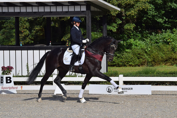 In Darmstadt standen heute die Reitpferde im Fokus. Gesucht wurden die neuen DSP-Reitpferdechampions 2020. Bei den dreijährigen Hengsten wurde der Morricone I-Sohn Montgomery (DSP/BW, Z.: Reinhold Marschall, B.: Thomas Casper) seiner Favoritenrolle gerecht. Schon in der Qualifikation überzeugte er mit seiner Mechanik und seinem Gangvermögen unter Ausbilderin Nicola Haug. Heute konnte der in München gekörte Hengst seine Leistung wiederholen und siegte mit einer Endnote von 8,6.