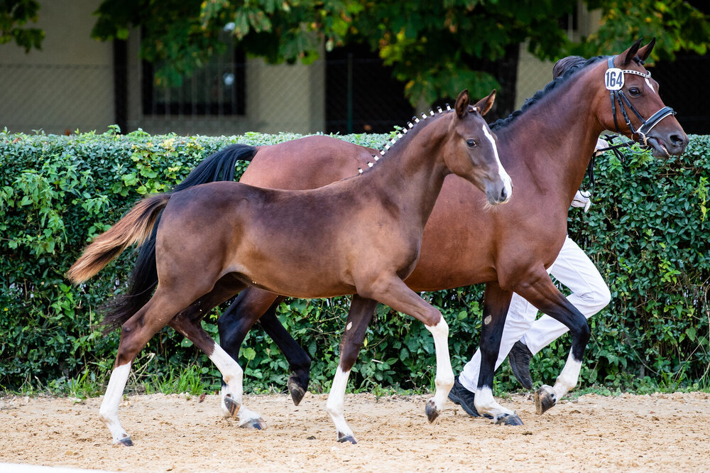 Die Qualität der Fohlen war sehr gut und so reizten die Richter die Notenskala nach oben aus - auch bei den dressurbetonten Hengstfohlen. Es siegte mit 9,17 der Fantastic-Sohn Felino aus der Zucht der Familie Bachmayr-Fischer). Mit 9,0 reihte sich hinter ihm Fibonacci v. Fabergé EP (Z.+B.: Julia Aschaber) ein. Das größte Lot gab es bei den dressurbetonten Stutfohlen. 23 Fohlen wurden hier vorgestellt. Mit einer Endnote von 9,17 setzte sich Gretchen Grey v. Sir Donnerhall I (Z.+B.: Sportpferdezucht Leser) an die Spitze des Feldes. Mit einem glatten sehr gut, 9,0, gab es gleich zwei Reservesiegerinnen: Khaleesi MBH v. Viva Gold (Z.+B.: Petra und Stefan Wiesenberger) und Sintra v. Foundation (Z.+B.: Nina Krasny).
