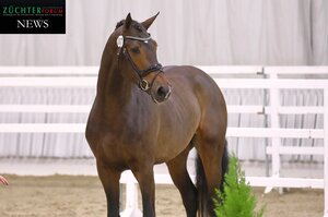 Die zweithöchste Gesamtnote mit 8,38 gab es für den Oldenburger Zuperman v. Vincent Maranello-Destano (Z.: Stefan Tietje, A.: Hengststation Hoffrogge). Herausragend waren hier der Galopp und die Rittigkeit – beides mit 9,5 bewertet. Zuperman überzeugte letztes Jahr bei seiner Körung in Vechta, bei der er zum 2. Reservesieger avancierte.