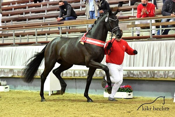 Westfalen kann 2020 auf einen starken Dressurjahrgang zurückblicken. Dabei regelte die rege Nachfrage offenbar sowohl Körergbnis als auch Preisgestaltung, und was auf den ersten Blick ungewöhnlich erscheint, ist im offenen, toleranten Westfalen inzwischen Gang und Gäbe, denn nach den Hannoveranern Karajan (2016) und Danciero (2018) war nun ein typbrillanter schwarzer Oldenburger Siegerhengst in Münster-Handorf. Und dieser Oldenburger war „made in Baden-Württemberg“: Er stammt aus der Zucht von Konrad Mensch (Erolzheim) und hat den Birkhof-Hengst Fair Game zum Vater, die Mutter Rock Z stammt ab von Destano-Harvard-Rubinstein I und brache bereits zwei gekörte Hengste von De Kooning, darunter den DSP-Körsieger aus 2019 in München.
