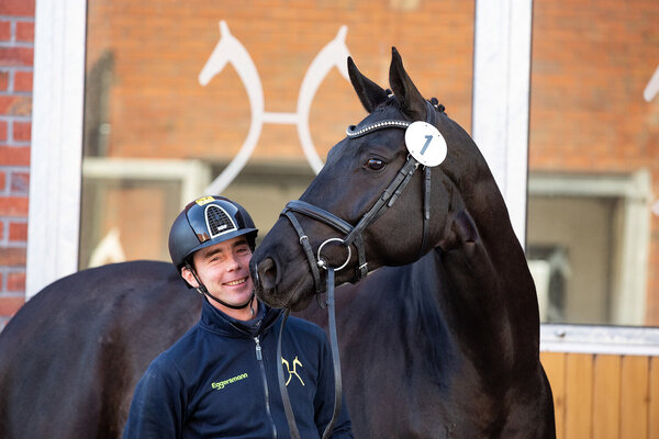 Es war der zweite spektakuläre Auftritt des nach dem deutschen Dichterfürsten benannten Finest/Desperados-Sohnes Friedrich Schiller (Z.: Henning Schulze, Tiddische, Ausst.: Aldrie Consultants AB, Schweden) in der Niedersachsenhalle. Schon als Fohlen weckte der ganggewaltige Rappe Begehrlichkeiten und wurde nach Schweden verkauft. Sechs Jahre später und mit Erfolgen in Dressurpferdeprüfungen ausgestattet, wurde der Wallach für 81.500 Euro an einen Stammkunden aus Frankreich versteigert, der sich schon zahlreiche Toppferde in Verden gesichert hat, die später im internationalen Viereck für Aufsehen sorgten.