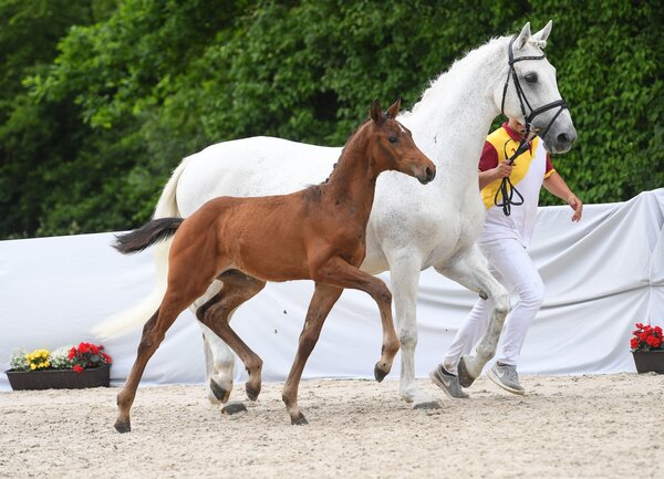 Hochkarätige Fohlen, hochkarätiger Sport und das besondere Immenhof-Ambiente geschaffen von Familie Frese, sind die Markenzeichen, dieser nun zum 6. Mal veranstalteten hoch erfolgreichen Überflieger-Auktion der Süddeutschen Pferdezuchtverbände Vermarktungs GmbH auf den Immenhöfen in Donaueschingen. Das spannende Bieterduell zwischen Westfalen und der Vereinigten Arabischen Emirate ging zugunsten des Springreiters Mohammed Ghanem Al Hajri aus. Für 25.000 Euro konnte er sich den Sohn des Cero Blue TN aus einer Mutter von Baldini I, die der Züchter Christian Heidecker selbst im Sport über 1,45m ritt, sichern. Das war die Preisspitze des 15 Fohlen umfassenden Lotes.Fast schon traditionell im Lot der Überflieger vertreten ist die DSP-Prämien Sportstute Suerte Bianca von Lancer II abstammend. Suerte Bianca stellte in diesem Jahr einen Sohn des Tangelo van de Zuuthoeve in der Kollektion. Diesen erwarb ein Hengstaufzüchter aus Westfalen für 20.000 Euro. Züchter Gerd Groß freute sich einmal mehr über diesen Spitzenpreis.Dritter im Preisranking mit 19.000 Euro war ein typvoller und mit sehr guten Bewegungen ausgestatteter Sohn des Vingino aus einer Mutter von Candillo aus der Zucht von Gabriele Eder. Überhaupt konnten sich die Züchter der Überflieger im Schnitt über 15.433 Euro freuen. Einmal mehr bewies sich die Schweizer Kundschaft auf den Immenhöfen finanzstark und sicherte sich vier Nachwuchskracher.„Das Fest der Pferde ist eine hervorragende Location für unsere Überflieger. Wir sind mega zufrieden. Einen besonderen Dank möchte ich unseren Züchtern aussprechen, die uns ihre besten Fohlen für diese Auktion anvertraut haben und alle hochzufrieden nach Hause fahren“, ist das Fazit von Auktionsleiter Fritz Fleischmann.Weiter geht es bei der Süddeutschen Pferdezuchtverbände Vermarktungs GmbH mit einer Kollektion von 15 Vielseitigkeitsfohlen in einer Online-Auktion am 17. August 2021 auf dsp.horse24.com und am 28. August mit der Shooting Stars-Kollektion (Dressur- und Springfohlen) beim Springturnier in Viernheim.