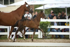 In diesem Lot der Dressurpferde standen fünf qualitätvolle Reitponys zum Verkauf. Vier von ihnen fanden heute einen neuen Besitzer, zwei davon im Ausland. Durchschnittlich wurde für diese 25.625 Euro investiert. Teuerste Offerte war der gekörte und bereits turniersportlich erfolgreiche Hengst Diamond Blue. Der Sohn des FS Daddy Cool/FS Golden Moonlight (Z.: Ulrich und Katja Neuhaus, Overath; Ausst.: Dr. Stefanie Rothenberger-Krause Pferdepension, Bad Homburg) ist ein bewegungsstarkes und lektionssicheres Pony zum direkten Durchstarten in der kommenden Turniersaison. Kunden aus den Niederlanden und Schweden kämpften lange um den Zuschlag für den Palominohengst. Am Ende wird der attraktive Hengst für 38.500 Euro einen Stall in den Niederlanden beziehen.