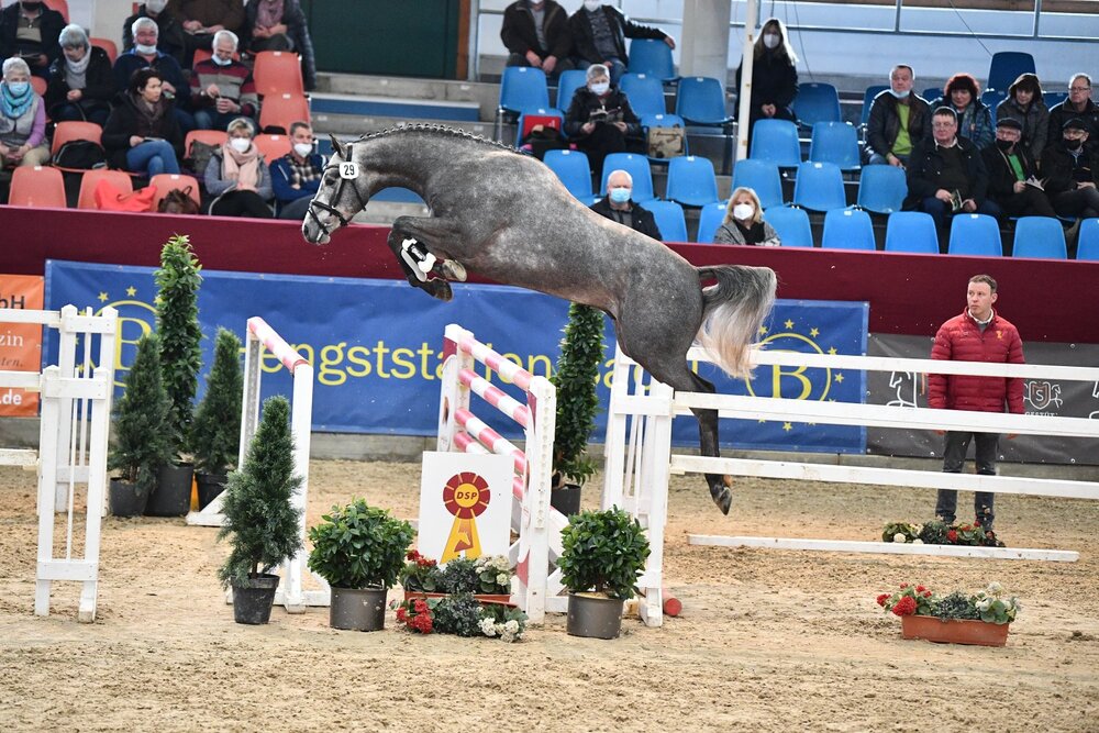 Am Wochenende zog das Schaufenster der Besten in Neustadt (Dosse) die Blicke der Zuchtszene auf sich. Mit von der Partie im Springlot: ein Sohn des Colman-Carinjo-Cartusch, gezogen von unserem ZÜCHTERFORUM-Redakteur Claus Schridde aus Querenhorst. Aussteller Heinrich Ramsbrock hatte das 2019 prämierte OS-Hengstfohlen beim Fohlenchampionat der Hengststation Völz (damals an dritter Stelle im Endring rangiert) entdeckt und gekauft. Der mittlerweile auf den Namen Colman’s Erbe getaufte Schimmel zeigte sich in Neustadt souverän und mit bestem Vermögen, er erhielt sein positives Körurteil. Direkt nach der Körung ging es für den Hengst ins thüringische Kühdorf, auf die Station von Simone Drechsler.