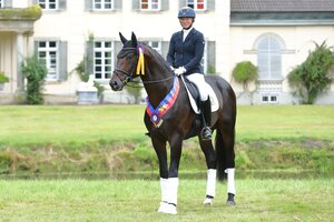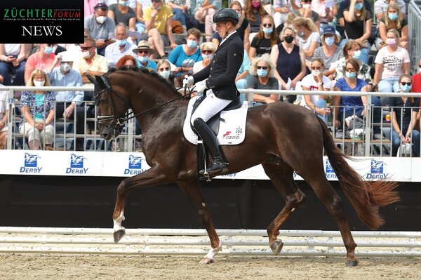 Bereits heute konnten sich fünfjährige Dressurpferde auch ihr Ticket für die Bundeschampionate in Warendorf sichern. Mit der herausragenden Note von 8,8 siegte hier der von Frederic Wandres präsentierte Hengst Fashion Prinz OLD, von Fürst Romancier - Sarkozy (Z: Gestüt Lewitz, \ B: Hof Kasselmann). Auch in der zweiten Abteilung stand ein Hengst vom Hof Kasselmann ganz vorne, Fabuleux Coeur, vorgestellt von Nicole Wego, vom Fürst Jazz (Inverness P) - Sandro Hit (Z: Gestüt Lewitz, \ B: Hof Kasselmann). Insgesamt wurde die magische Wertnote von 8,0 von sieben Paaren erreicht.