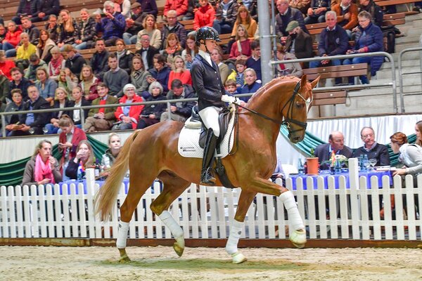 Gestern stand auf dem Klosterhof Medingen die 33. Herbstauktion auf dem Programm. Zum exquisiten Lot gehörten 20 Reitpferde und 28 Fohlen, die unter den Hammer von Burkhard Wahler höchstpersönlich kamen. Zur Preisspitze bei den Reitpferden avancierte Ouanto Fino, ein Sohn des Quantensprung-Laurentio (Z.: Johannes Tönnies). Der sympathische, großrahmige Wallach war bereits siegreich in Dressurpferdeprüfungen der Klasse A und L. Seine Mutter Laurena ist die Vollschwester zum gekörten Hengst Light and Easy. Ein überdurchschnittliches Dressurpferd direkt zum Losreiten - Quanto Fino war seinen neuen Besitzer aus Hamburg 220.000 Euro wert. Die sportliche Förderung wird in Zukunft Nuno Palma E Santos übernehmen. Zweitteuerstes Pferd war die bewegungsstarke Rappstute High Fashion v. Helium. Sie wechselte für 200.000 Euro in die Hände von Andrea Timpe.Insgesamt erreichten die Reitpferde einen Durchschnittspreis von 83.400€. Der Gesamtumsatz betrug 1.668.000€.Das bestbezahlteste Fohlen wurde Diolinor v. Danone (Z.: Silvia Zeyn). Für 75.000 Euro sicherten sich Bieter aus den USA den Zuschlag. Für die 28 Fohlen gaben Käufer aus USA, Canada, Indien, England, Schweden, Österreich, Niederlande und Deutschland durchschnittlich 15.300€ aus. „Ich freue mich in diesem Jahr besonders, unsere Spitzenpferde, von denen wir in Zukunft sicher noch einiges hören werden, in so tollen Ausbilderhänden zu wissen. Die weltweite Nachfrage nach unseren Fohlen spricht für die außerordentliche Qualität der diesjährigen Kollektion!“ resümierte Christoph Wahler die gelungene Auktion.