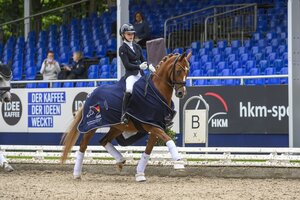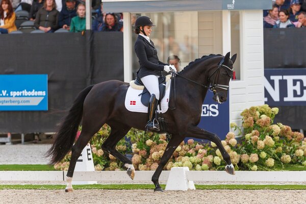 Bei den Sechsjährigen gab es einen weiteren Titel für den Hannoveraner Danciero v. Dancier (Z.: ZG Weber/Broers). Zunächst von Eva Möller ausgebildet, wechselte der Rappe dann an die Helgstrand-Stammkundin Anna Kasprzak. Unter ihr trabte er nun zu 92,60 Punkten. Silber ging an Carina Cassøe Krüth und den Oldenburger-Hengst Movie Star v. Morricone (Z.: Ines Lohmann). Für die Beiden gab es 88,00 Punkte.