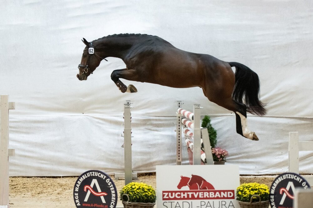 Die Schimmelstute Marigie d´O – im Besitz und aus der Zucht von Dr. Franz Hummer-Niedermayr – imponierte im höchsten Maße. Väterlicherseits geht sie auf Origi D'o Marisol, Sohn des Diamant de Semilly, zurück und die Anpaarung wurde mit Cayado komplettiert. Für das Vermögen erhielt die schicke, groß aufgemachte Siegerstute die Tageshöchstnote von 9,50 Punkten und platzierte sich mit einer Endnote von 9,10 Punkten auf Rang eins.