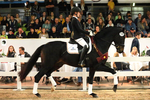 Zur Preisspitze avancierte einer, der schon wenige Stunden zuvor die Blicke auf sich gezogen hatte: Der frisch gekürte Prämienhengst der vorangegangenen DSP-Sattelkörung Omega. Der Sohn des Springbank II-Krack C (Z.: A. van Erp, A.: Falk Gfrörer) begeisterte Körkommission und Kunden gleichermaßen durch seine Bewegungsqualität und seine tolle Rittigkeit. In einem spannenden Bieterduell schnellte der Preis nach oben, bis Hendrik Schulz-Rückamp den Hammer schließlich beim Spitzenpreis von 90.000 Euro fallen ließ. Der Hengst wird in fördernde Hände in Süddeutschland wechseln. Man darf gespannt sein, wann man ihn das nächste Mal bei einem öffentlichen Auftritt sehen wird.