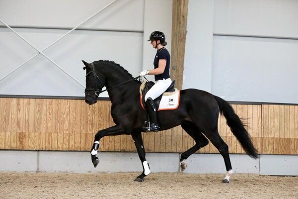 Willeke Bos von Stal 104 beeindruckte bereits auf KWPN Hengstkörung 2022 mit ihrer Zucht: sie stellte fünf Hengste aus eigener Zucht vor, vier davon wurden zur HLP zugelassen und drei prämiert. Bos lieferte alle vier an zum 21-tägigen Herbst-Test des KWPN Verbandes und drei wurden heute gekört. Obsession Taonga vereint in seinem Pedigree die berühmtesten 104 Pferde: Vitalis (Vivaldi - D-Day) x NMK-Champion Jatilinda v. All At Once (Ampère - Gribaldi) x Jamesons Mutter Atilinda v. Negro - Krack C) und war damit eigentlich bei die Hengstkörung das schönste Aushängeschild für die Zucht von Willeke Bos. Dort verpasste er zwar eine Prämie, entpuppte sich aber als Spitzenhengst in der HLP Die 1,72m. Obsession Taonga erhielt eine 7,5 für den Schritt, eine 9 für den Trab, eine 9,5 für den Galopp, eine 8,5 für Elastizität eine 9 für Selbsthaltung und Balance, eine 9 für Rittigkeit und Einstellung und eine 8,5 für Anlage als Dressurpferd. Insgesamt 87 Punkte und damit HLP-Sieger. Der Prämienhengst (und inoffizielle Sieger der Hengstkörung 2022) Opoque (All At Once - Davino V.O.D. - Fürst Heinrich) aus dem Hause 104 und Helgstrand Dressage hinterließ in der Ehrenrunde mit Applaus den größten Eindruck.Diese 1,68 m. messender Dreijähriger, der dieses Jahr schon ein ganzes Programm absolviert hat: KWPN-Hengstkörung, DWB-Hengstkörung, Hengstschauen, eine Prüfung in Oldenburg, eine Vorstellung diesen Sommer bei den KWPN-Championate und nun auch die Leistungsprüfung) scheint zu sein wissen, was beim Klatschen erwartet wird. Auffällig war auch, dass er (für einen Dreijährigen) schon sehr gut weiß, was Versammlung ist. 85,5 Punkte bekam er. Der dritte 104-Hengst im Bunde ist One Two Three (Vitalis III v. Vivaldi - D-Day), der mit 78 Punkte zugelassen wurde. 3. und 4. wurden zwei in Deutschland gezogene Hengste: O’Frederic (For Romance I - Fidertanz, Z: H. Schulte, Eggermühlen) bekam 84 Punkte und Ozzy (Asgard’s Ibiza - For Romance, C. Ortmann, Ellerbrock) bekam 83 Punkte. HelminkAlle einzelne Ergebnisse:
