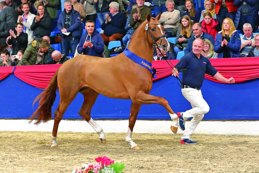 Wie zu erwarten folgten im Feld auch einige Hengste die man von den deutschen Körplätzen kennt. So etwa auf Rang drei der westfälische Prämienhengst Feinsten v. Franklin, auf Platz vier der in Oldenburg prämierte Fifty-Fifty v. Fürst Toto und der Bundeschampionatsdritte Elastic v. Escolar.