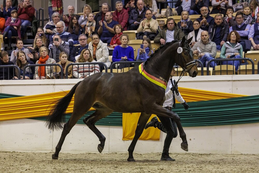 Begeisterungsstürme entfachte auch der zweitrangierte Rockingham (v. Saint Cyr-Kaiser Wilhelm-Tuareg-Seeadler, Fam. O314 Renette, Z.: Mathias Kley, Gotha), der seitens des Publikums bei jedem Auftritt frenetisch gefeiert wurde. Ein echtes Kraftpaket, mit ganz viel Power, drei guten Grundgangarten und respektablen Möglichkeiten auch am Sprung. 87.000 Euro war der Steigpreis.