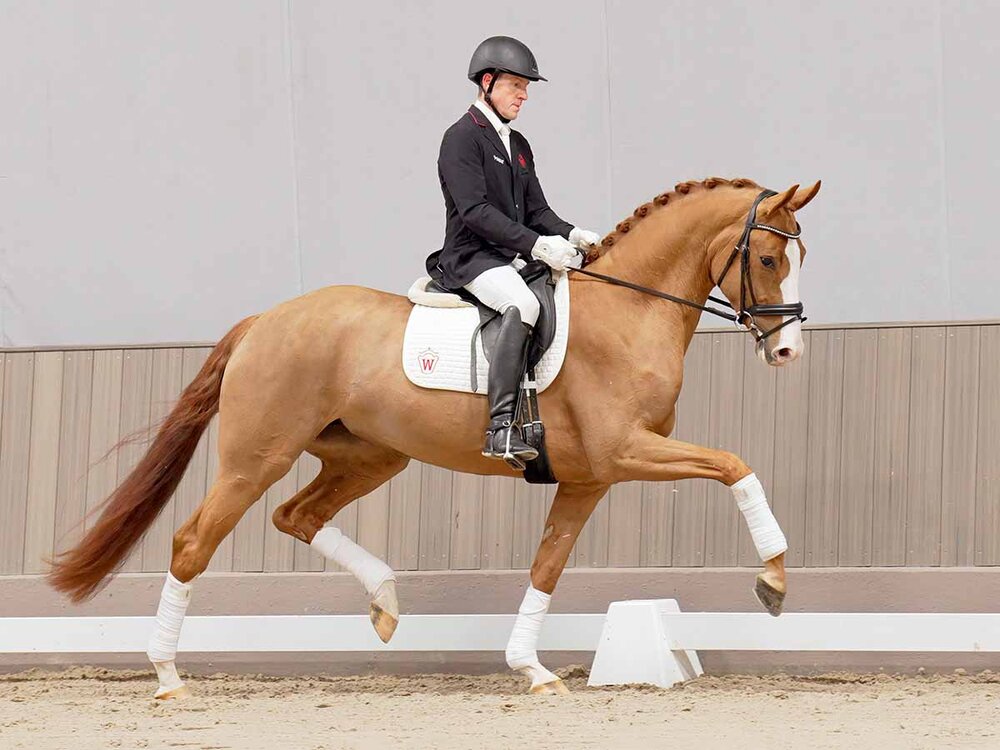 Eine wahre Superheldin aus Münster-Handorf ist die Kopfnummer 1 dieses Auktionslots. Mit dem bezeichnenden Namen Supergirl zog die Fuchsstute schon von Beginn der Auktionszeit an Alle in ihren Bann! Ausgezeichnet mit der Staatsprämie war sie im vergangenen Jahr Reservesiegerin der Westfälischen Elite-Schau. Die vierjährige Sir Heinrich/Laureus-Tochter (Z.: Berthold Völker, Ahaus; Ausst.: Christoph Rawert, Coesfeld-Lette) überzeugt mit drei hervorragenden Grundgangarten und lässt in Qualität und Zukunftsperspektive keine Wünsche offen. Lange war das Bieterduell, welches sich zwischen drei Kunden online an den Bildschirmen und einer Kundenpartei in der Auktionshalle in Münster-Handorf abspielte. Am Ende hatten Kunden aus Österreich am Bildschirm den längsten Atem und ersteigerten die bildhübsche Stute zum herausragenden Zuschlagspreis von 266.000 Euro. Die Turnier- und Championatssaison kann mit diesem Pferd beginnen!In der Riege der springbetonten Auktionskandidaten hatte es die Kopfnummer 12 der Kundschaft besonders angetan. Titan SR (Z.: Jean-Loup, Frankreich; Ausst.: SR Sportpferde, Leipzig) überzeugt mit Qualität und einer sehr guten Manier. Der Sohn des Tornesch/Cornet Obolensky ist bereits turniersportlich weit gefördert und bis zur mittelschweren Klasse hochplatziert. Zum Zuschlagspreis von 48.000 Euro wechselte er den Besitzer. Er wird seine Sportkarriere in Deutschland fortsetzen.Ein Pony stand in diesem Auktionslot zum Verkauf. Der vierjährige, gekörte Sohn des Dating AT NRW/Vincent (Z.: Adolf-Theo Schurf, Bedburg; Ausst.: Designed 4 Dressage Ltd. England) trägt den bezeichnenden Namen Designed to Dance. Er war seinen neuen Besitzern 21.000 Euro wert. Bereits siegreich in Reitpferdeprüfungen überzeugte er durch überdurchschnittlich gute Grundgangarten und eine hervorragende Rittigkeit.Von den 58 zur Auktion angebotenen Reitpferden wechselten rund drei Viertel den Besitzer. 31.583 Euro investierte die internationale Kundschaft durchschnittlich. Dabei setzte das Westfälische Pferdestammbuch insgesamt 1.326.500 Euro um. Zwölf der verkauften Pferde werden in Zukunft außerhalb von Deutschland weiter gefördert werden.Noch bevor Supergirl die Auktionshalle am heutigen Abend betrat wurde die Auktion von einem kleinen aber feinen Lot der jüngsten Westfalen eröffnet. Fünf Fohlen machten den Auftakt am heutigen Abend. Mit der Kopfnummer 105 tanzte sich ein Ponyfohlen als Schlusslicht ganz besonders in die Herzen des Publikums. Die Tochter des dreifachen Bundeschampions DSP Cosmo Royal wurde von Dietmar Boom, Legden, aus der St.Pr.St. Golden Sunlight B v. FS Golden Moonlight gezogen. Zum Zuschlagspreis von 25.000 Euro wird die Palominostute in Deutschland aufwachsen. Vier der fünf angebotenen Fohlen wechselten am heutigen Abend den Besitzer. Im Durchschnitt investierte die Kundschaft 17.125 Euro in ihre Zukunftshoffnungen.Erstmalig fand die Frühjahrs-Auktion in Münster-Handorf in Form einer OnLive-Auktion statt. Gebote konnten sowohl live vor Ort, am Telefon als auch online unter onlineauction.westfalenpferde.de abgegeben werden. Das Resümee des Veranstalters hierfür ist positiv: „Nach der langen Auszeit der Live-Auktionen in den vergangenen Jahren, freuen sich die Zuschauer wieder live dabei sein zu können. Trotzdem ist das Online-Bieten zukunftsträchtig. Wir sind froh, dass wir die Möglichkeit haben mit unserem Partner HORSE24 beide Auktionsmodelle zu kombinieren“, sagt Auktionsleiter Thomas Münch. Mit Hilfe der Online-Auktionsplattform kann auch im Nachgang folgende Neuerung angeboten werden: Die Pferde, die am heutigen Abend keinen neuen Besitzer finden konnten, verbleiben zunächst im Westfälischen Pferdezentrum in Münster-Handorf. Sie werden in einer 2nd Chance Online-Auktion erneut angeboten. Das Auktionslot steht ab Montag, 3. April online zur Einsicht bereit. Die Pferde können bis zum 11. April in Münster-Handorf ausprobiert werden. Dann endet die Online-Auktion im BidUp ab 19.30 Uhr.