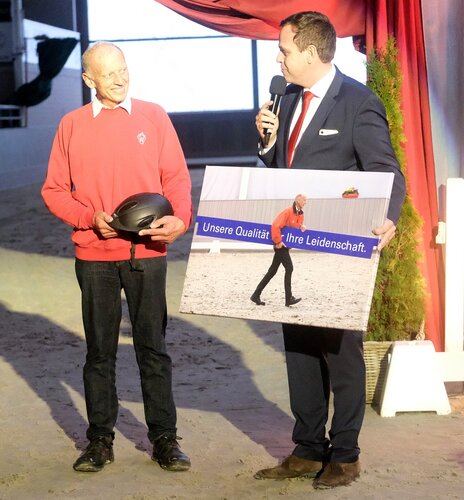 Seit 1968 sind westfälische Körungen, Eliteschauen und Auktionen ohne Franz Josef Schulte im Busch, vielen nur unter seinem Spitznamen Heino bekannt, undenkbar. Mit sicherer, aber feiner Hand leitet er seit vielen Jahren die Truppe der Vorführer und hat so mindestens schon zwei Generationen junger Menschen in die Geheimnisse dieses wichtigen und mitunter nicht ungefährlichen Jobs eingewiesen. Anlässlich der Frühjahrsauktion des Westfälischen Pferdestammbuchs Ende März gab es jetzt dafür unter dem großen Applaus der Anwesenden durch Zuchrt- und Auktionsleiter Thomas Münch eine besondere Auszeichnung für den mit 72 Jahren wohl dienstältesten Vorführer in der gesamten deutschen Pferdezucht. TH