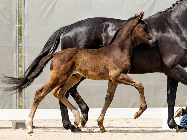 Schwungvolle Trabbewegungen, Galoppiervermögen, taktsicherer Schritt, abgesicherte Mutterstämme und moderne Anpaarungen kennzeichnen diese Kollektion. Sportlich erfolgreiche Hengste wie Viva Gold, Total Hope, San to Alati, Secret, Shu Fu, Despacito, Macchiato, Damaschino und Va'Pensiero präsentieren stolz ihren Dressurnachwuchs.