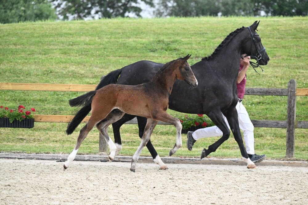 Ein Auftakt nach Maß der in das baden-württembergische Meisterschaftsturnier eingebetteten Veranstaltung, an den sich ein nicht minder positiver Auktionsverlauf anschloss. Den Spitzenpreis von 16.000 Euro erzielte Friemel für „Elvis“, einen Sohn des Eldorado van de Zeshoek, von Uwe Eberhardt im baden-württembergischen Herbrechtingen aus einer I’m Special de Muze-Tochter gezogen. Sportlichkeit ist diesem Fohlen quasi in die Wiege gelegt, dafür stehen nicht nur die Ausnahmevererber der niederländischen Station Nijhof, das verspricht auch die Mutterline. Sowohl die Groß- als auch die Urgroßmutter waren im Sport der schweren Klasse erfolgreich und auch ihre Nachkommen sind in internationalen Parcours zuhause. Und sportlich gefördert wird sicher auch Elvis, denn neuer Besitzer des Braunen ist der Springstall Schill, der quasi vor der eigenen Haustür einkaufte.