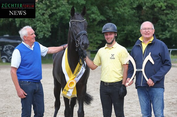 Es war ein klassischer Start-Ziel-Sieg, der heute die Dressurklasse der Herwart-von-der-Decken Schau entschied. Gleich die erste Starterin des Dressuraufgebots des dreijährigen Hannoveraner Stutenjahrgangs, Ballerina v. Bon Courage-Destano (Z.: Hof Schepergerdes, Ausst.: Christa Zumbeel-Dust) überzeugte das Richtergremium mit ihrem Auftritt und wurde schlussendlich als Siegerstute Dressur ausgezeichnet. Donna Bella v. Don VHP Z-Cascadello (Z. u. Bes.: Stefan Aust) wurde zu Hannovers neuer Springsiegerin 2023 proklamiert. Typstark und mit viel Kraft im Absprung sowie Vermögen ausgestattet, konnte die Fuchsstute aus sporterfolgreichem Mutterstamm, die Richter Paul Mais, Hergen Forkert und Hannovers Zuchtleiter Ulrich Hahne überzeugen. Im Lot der 18 Springstuten wurde auch die beste Halbblutstute ausgezeichnet, die braune Zambia v. Zinedream-Ransom O’War xx (Z. u. Ausst.: Ina von Estorff).