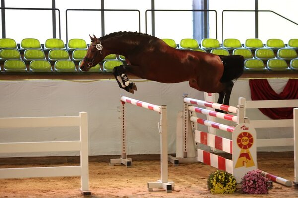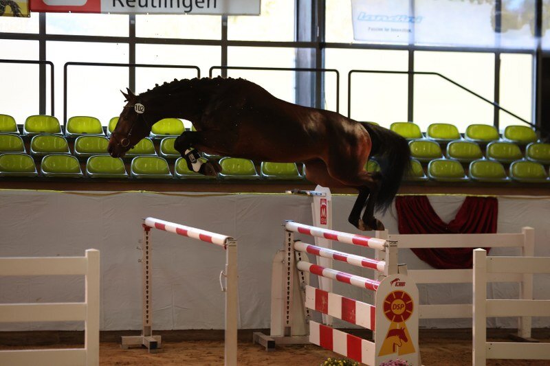 Ebenfalls das positive Körurteil erhielt die Kopfnummer 103 mit Namen Call me Crack (Holst). Der 2020 geborene Nachkomme des Crack – Carvallo stammt aus der Zucht und dem Besitz von Peter Hettler aus Pfullingen. Call me Crack wusste vor allem in der Freispringgasse zu überzeugen. Zwar erlaubte sich der Junghengst einen Fehler zu Beginn, reagierte danach aber sofort, zeigte schnelle Reflexe und eine tolle Vorderbeintechnik. Die Höhen stellten kein Problem dar. Die Jury lobte den maskulinen Ausdruck und das schöne Gesicht sowie seine präsente und kraftvolle Erscheinung. Im Trab war der Junghengst zwar etwas begrenzt gewesen nach Aussage der Körkommission, doch im Galopp punktete der Braune mit einer praktischen Galoppade, die schön im Bergauf angelegt ist. Auch unter dem Sattel wusste Call me Crack zu gefallen. Vorgestellt von Auktionsreiterin Miriam Bohn reagierte der Hengst aufmerksam auf alle Reiterhilfen. Die Übergänge funktionierten sicher und die Anlehnung war dem jungen Alter entsprechend konstant.