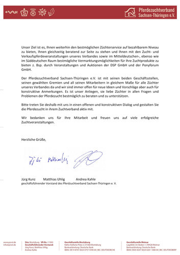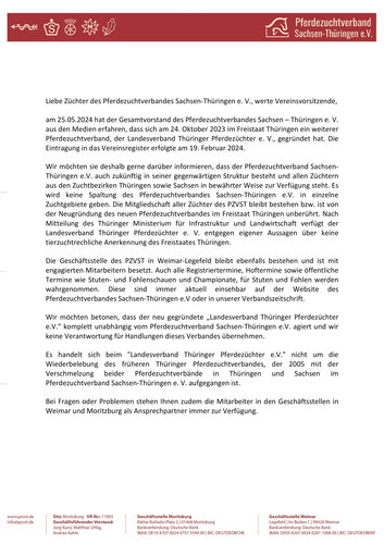 Offener Brief des Pferdezuchtverbandes Sachsen Thüringen an seine Mitglieder