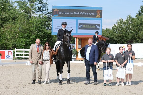 Auch auf Platz zwei findet sich das Gestüt Birkhof wieder. Der Bohemian-Sohn Barbossa reihte sich mit einer Gesamtbewertung von 8,1 auf dem Silberrang ein.  Der von Christian Kraus gezogene Rapphengst hat nicht nur den Birkhof als Gemeinsamkeit, auch er steht im Besitz von Thomas Casper. Zudem ist Kraus Züchter eines weiteren, hocherfolgreichen und auf dem Birkhof stationierten Hengstes. Die Rede ist von Arezzo Man. Der vierjährige Barbossa gefiel durch seine Gleichmäßigkeit. Im Galopp erhielt er eine 8,5, alle weiteren Teilbereiche wurden mit einer 8,0 bewertet. Der aus einer Mutter v. Gribaldi stammende Junghengst war in diesem Jahr bereits siegreich in Reitpferde-Prüfungen. Die bronzene Schleife durfte sich Bourani S anstecken lassen. Züchter und Besitzer des Dreijährigen ist Rolf Schneider. Vorgestellt wurde er von Mara Müller, das Paar erhielt die Wertnote 7,8. Das Richterteam, bestehend aus Sonja Pilton und Gerd Wolfgang Sickinger, rangierte L’Unique v. La Vie/Sandro Hit mit 7,6 an vierter Stelle ein. Der dreijährige Hengst wurde bei Verena Waldner geboren, auch er hat Thomas Casper zum Besitzer. Nach einer kurzen Pause konnte die zweite Gruppe der Hengste an den Start gehen. Grund hierfür: L’Unique war das zweite von Anna-Lisa Schepper vorgestellte Pferd in der laufenden Prüfung.