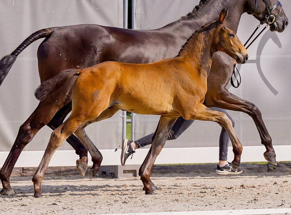 Ein Zuschlagspreis von 12.000 Euro machte den mit besten Springgenen ausgestatteten Vatson Sitte/Chacco-Blue-Sohn Veit G&M (Z. u. Ausst.: Gestüt Gattermann & Malkoc, Rehburg-Loccum) nicht nur zum zweitteuersten Fohlen, sondern auch zum bestbezahlten Springfohlen. Seine Mutter, Leistungsstute-Springen Chablis, war mit Dieter Smitz bis 1,45 Meter erfolgreich und ist im Programm Hannoveraner Springpferdezucht mit zwei Sternen ausgezeichnet. Der im April geborene Braune ist ihr erstes Fohlen.