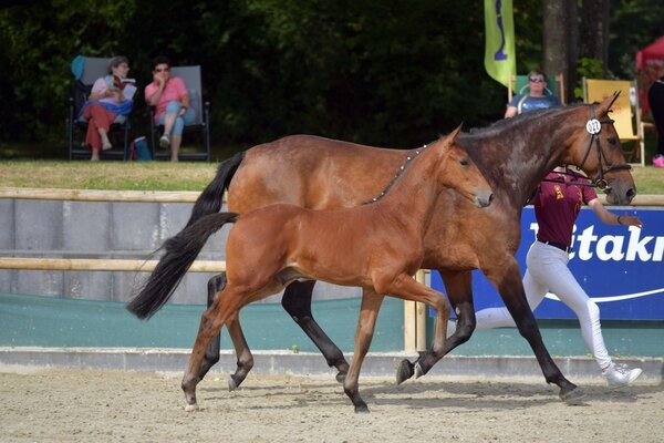 Mit Spannung erwartet, ist der erste Part der DSP-Diamanten-Fohlen-Auktion in Darmstadt mit der Versteigerung der Springfohlen bereits Geschichte. Die Dressurfohlen folgen heute Abend. Im Lot der springbetonten Fohlen avancierte Vinguno von Vingino aus einer Numero Uno-Mutter zur Preisspitze der Veranstaltung. Der, von Dr. Wolfgang Peter im niederbayerischen Pfarrkirchen gezogene braune Hengst ging für 14 000 Euro an einen Bieter aus den USA. Für 10 000 Euro wechselte der ebenfalls in Bayern, bei Wolfgang Regele in Maihingen gezogene, Comme il Faut-Nachkomme Comming Big (MV Big Star) den Besitzer. Insgesamt wurden 26 Fohlen mit einem Gesamtumsatz von 191 750 Euro zugeschlagen. Der Durchschnittspreis lag bei 7375 Euro. (Foto: Dill/Vinguno)