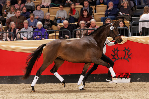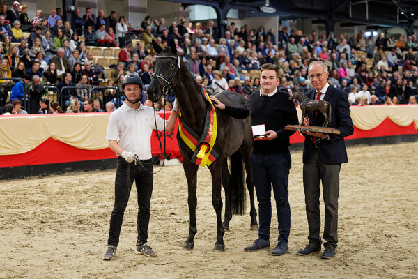 Jahressiegerin 2024 wurde die auffallende Rappstute Ibiza's Highlight (v. Millennium-Montafon-Songline-Connery-Onassis-Karwendelstein-Anteil-Humboldt-Totilas-Eichendorf, Fam. O15A Italia/Scharfetter-Hengstenberg/Kallwischken, Z. u. B.: Tim Vester, Hennef/Rhld.), zuvor Siegerstute der zentralen Stuteneintragung im Zuchtbezirk Rheinland. Tim Vester erhielt die Goldmedaille der Deutschen Reiterlichen Vereinigung und die Bronzeplastik des Hengstes Totialas, der ja direkt im fallenden Mutterstamm der Siegerstute vorkommt. Das Publikum feierte die enorm antrittsstarke Stute frenetisch, so wie jede Stute übrigens mit großem Applaus begleitet wurde.