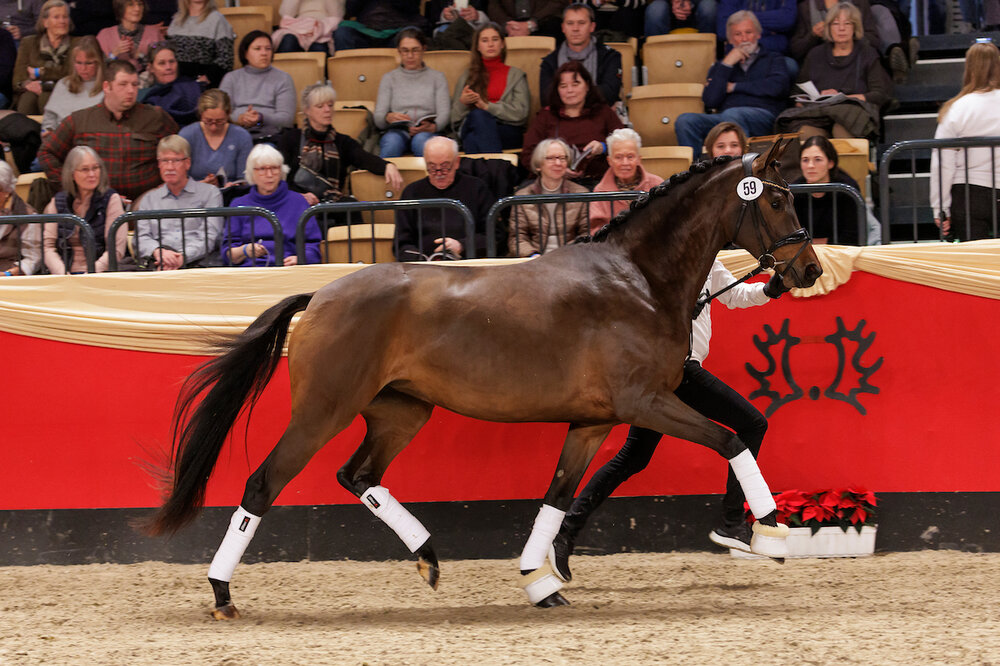 Teuerstes Reitpferd war mit einem Zuschlagspreis von 45.000 Euro die fünfjährige schwarze Prämienstute Only Solution (v. Schwarzgold-Kaiserdom-Hofrat-Marduc, Fam.O69A Oka/zu Dohna-Schlobitten, Z.: Martina Müller, Fehmarn), die unter dem Sattel brillant inszeniert wurde. Der Vater Schwarzgold (Station Poll-Hörem) ist 2024 Trakehner Hengst des Jahres.