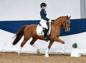 23.000,00€ erzielte der achtjährige Wallach Danys Champagner. Der bewegungsstarke Palomino wurde in Baden-Württemberg gezogen von Rudolf Bühner, er stammt ab von Dany Vanille / Veivel R. Ein heißes Bieterduell mit Kunden aus den USA, Italien und Deutschland entfachte um den weit ausgebildeten Dany - eine Dressurreiterin aus Süd-Deutschland hatte den längsten Atem und ersteigerte ihn schließlich für ihren Sohn als Sportpartner.