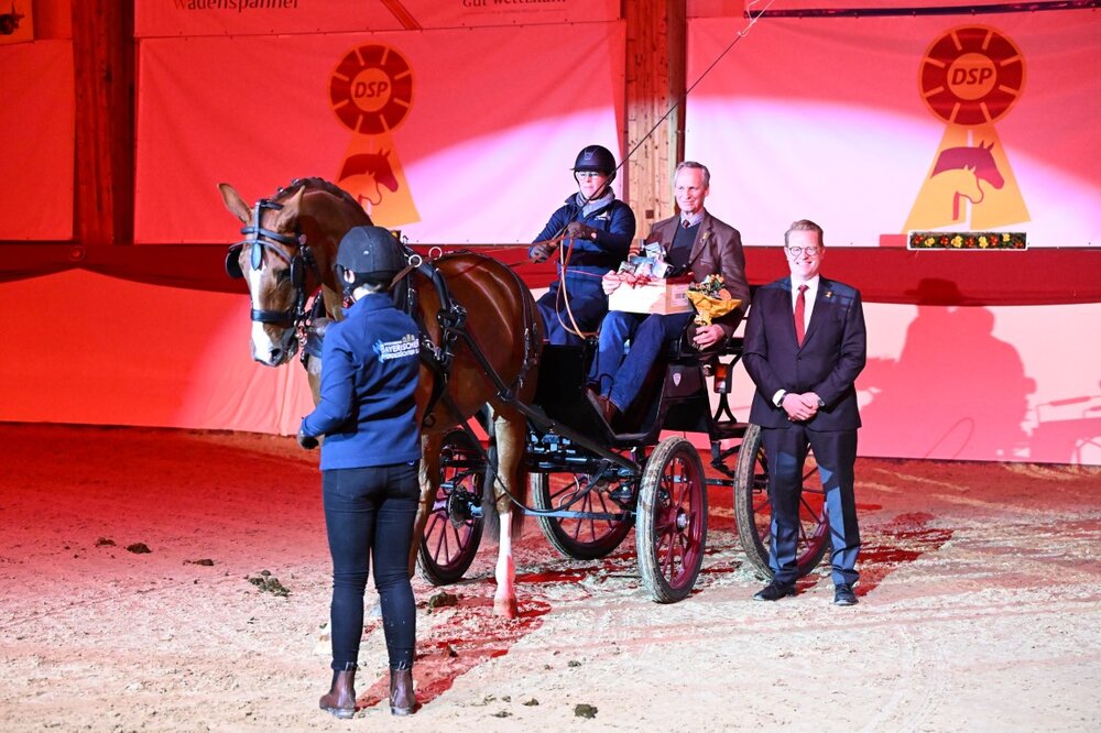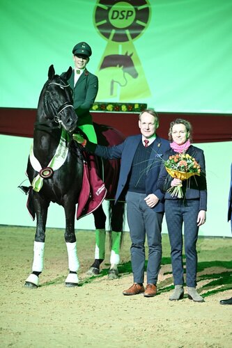 Die verdienten Hengste erhielten ihre herausragenden Leistungen Ehrungen und Auszeichnungen. Die höchste Auszeichnung, der das DSp zu vergeben hat, der Titel „Elitehengst“ ging an Decurio, einen 17-jährigen lackschwarzen Hengst aus dem Sächsischen Landgestüt Moritzburg, der sowohl selbst in der schweren Dressurklasse hocherfolgreich war als auch rund 200 Nachkommen hervorgebracht hat, die als Turnierpferde eingetragen sind, darunter den wohl bekanntesten und erfolgreichen Sohn DSP De Sandro. Zusätzlich wurde der Diamant-Preis an den Züchter des bei einer DSP-Körung gekörten, nach Ranglistenpunkten erfolgreichsten in der vergangenen Saison siebenjährigen Springhengst. Dieser war in diesem Jahr Askapino, einen Sohn des Askari und Halbbruder der Weltmeisterin DSP Alice, der unter dem Sattel von Felix Ewald alterentsprechend bereits in Klasse M** hocherfolgreich war. Prämien wurden an weitere Hengste vergeben, die besondere Erfolge im Sattel vorzuweisen hatten. Darunter der sechsjährige DSP Dream Royal, Siegerhengst der DSP-Körung 2022 und erfolgreicher Bundeschampionats-Finalist, sowie der ebenfalls sechsjährige Arezzo Gold, der sich als Sieger seines Sporttests in München und im Bundeschampionat 2024 bewies. Weitere Prämien erhielten der vierjährige Hannoveraner Elton von Emerald van het Ruytershof-Ludwig aus Marbach und der fünfjährige Boccacio des Brandenburgischen Haupt- und Landgestüts Neustadt/Dosse. Auch Alpha Centauri ebenso aus Neustadt/Dosse und Unit von der Hengststation Verworner wurden aufgrund ihrer sportlichen Erfolge ausgezeichnet und prämiert.