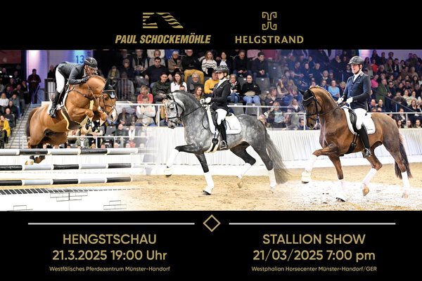 Nach dem überwältigen Erfolg der beiden traditionellen und auch in diesem Jahr wieder restlos ausverkauften Hengstschauen in Verden und Vechta, bieten die Deckstationen Paul Schockemöhle und Helgstrand Dressage nun, auf vielfachen Wunsch der Züchter, eine dritte Hengstschau an – und zwar erstmals im Westfälischen Pferdezentrum in Münster-Handorf.