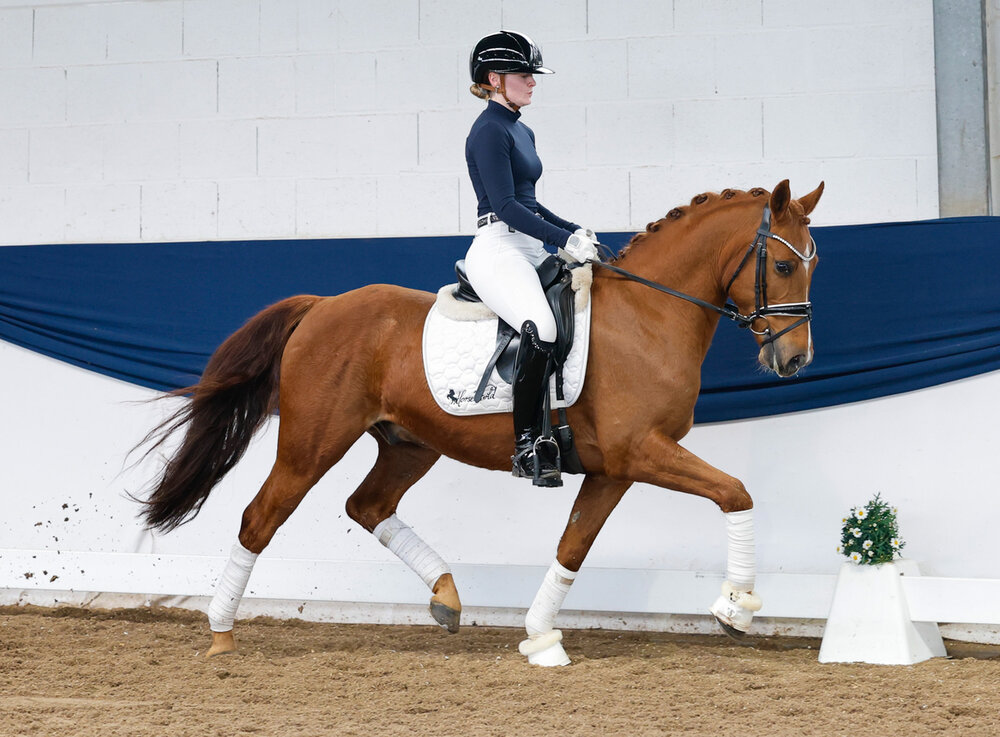 Für 20.000,00€ wechselten gleich drei Ponys den Besitz, unter anderem der achtjährige Wallach Der Leonardo. Der Fuchswallach ist im Dressursport bis zur Klasse L erfolgreich, er wurde gezogen von Christel Lampe aus Huede und stammt ab von Da Vinci HS – Navajo. Leo fand mit einer jungen Dame aus dem schönen Sauerland seine neue Besitzerin, die Beiden waren beim Ausprobieren direkt eine Einheit. Ebenfalls 20.000,00€ erzielte der vierjährige XL Wallach Steendieks Dembélè, ein Sohn des Morgenstern Dalai aus einer Mutter von Steendieks Constantino. Der 1,62m große Wallach erblickte auf dem Gestüt Steendiek von Peter Böge im holsteinischen Schönhorst das Licht der Welt. Er konnte sich schon in Reitpferdeprüfungen platzieren und überzeugte sowohl mit seinem beeindruckenden Bewegungsablauf wie auch seinem hochanständigen Interieur seine neue Familie aus dem Ruhrgebiet.
