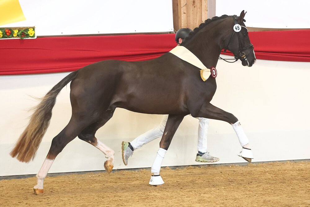 Fünf Exemplare unseres vierten Bandes "Hengste Exklusiv" haben wir an Sie verlost. Bei unserem Rätsel handelte es sich um keinen geringeren als den dressurbetonten Reservesieger der Westfälische Hauptkörung 2024: "Total Gut" aus der Zucht von Ruth Volkwein und im Besitz von Yara Reichert von Toto Gold-Floriscount. Einige haben ihn erkannt und ihre Chance genutzt und an unserem Gewinnspiel teilgenommen.