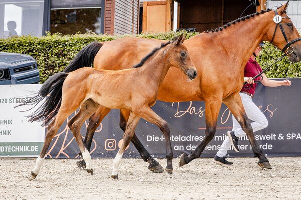 Preisspitze in Hörup wurde die Katalognummer 11, Ces’t Chic Hero P v. Cento-Echo van’t Spieveld aus der Zucht von Timm Peters aus Bargenstedt. Nach einem langen und spannenden Bieterduell im Herzen des Springflut Festivals – inmitten des Marktplatzes – erhielten Kunden aus Deutschland den Zuschlag. 20.000 Euro war ihnen das Stutfohlen wert, das auf die berühmte Usha van’t Rossakker zurückgeht. Bei 17.500 Euro fiel der Hammer von Auktionator Hendrik Schulze Rückamp bei der Katalognummer 10, Tequila v. Pegase van’t Ruytershof-Cascadello I. Johannes Manns aus Wöhrden ist Züchter des Stutfohlens aus dem Stamm 730B. Ihre Großmutter, India Blue v. Zirocco Blue, ist eine Vollschwester zu den gekörten Hengsten Zornell I und II. Zornell II trägt zudem das Präfix L.B. im Namen und war mit Christina Liebherr (SUI) im internationalen Turniergeschehen erfolgreich.