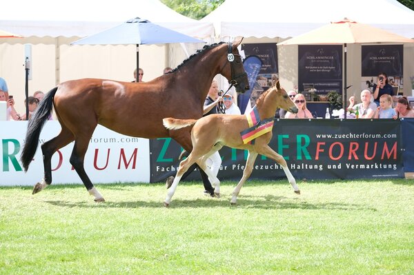 Wir hatten in der Bildunterschrift ursprünglich die Vaterschaft des Siegerfohlens dem Hengst Asgard's Ibiza zugeschrieben, haben dies aber mittlerweile korrigiert.