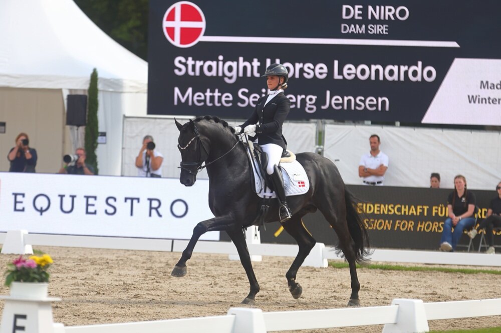 Straight Horse Leornardo ist ein Sohn von Lord Europe, der Hengst, der 2023 im Finale des Nürnberger Burg-Pokals unter Leonie Richter Zweiter wurde. Der Hannoveraner Starvererber De Niro ist der Muttervater des Dänen, der gezogen wurde und im Besitz ist von der Straight Horse ApS. Für die Grundgangarten schrieben die Richter eine 8,8 (Trab), eine 7,8 (Schritt) und eine 9,1 (Galopp) auf, je die 9,0 gab es für die Durchlässigkeit und Perspektive. Das Bronze-WM-Ergebnis lautete am Ende 87,40 Prozent.