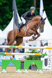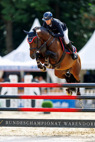 Die zweite Wertung der fünfjährigen Springpferde wurde dominiert durch zwei gekörte Hengste vom DSP-Körplatz München aus dem Jahr 2023. Sie wurde quasi zum Heimspiel für den Warendorfer Landbeschäler Arcassio (v. Alaba-Darco de Revel-Cassini Boy Junior-Loran-Chambertin-Calxpso II, Holst. Stamm 4705, Z.: Josef u. Christiane Wilbers, Weeze), der mit Jana Fink souverän die erste Abteilung (9,3) gewann. Landstallmeister Dr. Felix Austermann hatte den Rheinländer seinerzeit auf der DSP-Körung in München entdeckt. Dort war er Jahrgangsgefährte des braunen DSP-Springsiegerhengstes Jack Blue (v. James Blue-Cezaro-Glenn Almé-Semit-Hannibal-Diabas I, Hann. Stamm 365/Nerva, Z.: Volkmar und Heike Schadock, Wehnsdorf/Brdbg.), der mit Pia-Luise Baur sowohl in der ersten als auch in der zweiten Qualifikation jeweils die zweite Abteilung gewann.