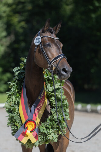 „Was für eine beeindruckende Stute“, so lautete der erste Kommentar des Trakehner Zuchtleiters Neel-Heinrich Schoof. „Die Stute verfügt über viel Antritt und Stabilität und einer besonderen Aura mit hervorragenden Bewegungen“, lautete das Urteil des Zuchtleiters. Die Bundessiegerstute war dreijährig bereits Trakehner Jahressiegerstute, hochplatziert bei der Bundesschau in Lienen und brachte zwei Fohlen. Sie entspringt der Familie der Blinklicht, die bereits zahlreiche gekörte Hengste, wie Buddenbrock v. Sixtus, Berlusconi v. Axis, und Banderas v. Le Rouge hervorbrachte.