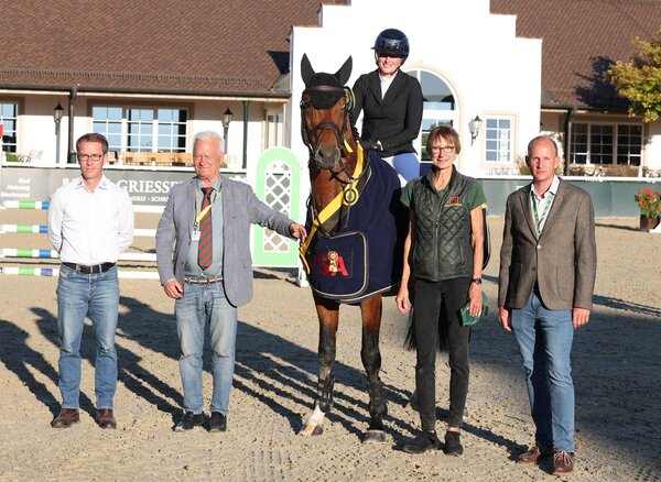 Auf Rang fünf noch einmal das Haupt- und Landgestüt, diesmal mit dem blutgeprägten eleganten und hochbeinigen Schimmel Askaryan von Asca/Little Rock, diesmal unter Bereiterin Eileen Maier. Im Juli in Weilheim wurde der Gestütshengst unter Eva-Maria Lühr Landeschampion der vierjährigen Springpferde; gezüchtet hat ihn Heinz Walz in Bad Wildbad. Gleichauf platzierte Philipp Borst die schwarzbraune Stute Celina O von Chubakko/Cento aus der Zucht von Ulrich Ostermann in Adelmannsfelden.