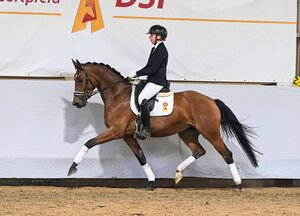 Auktionator Hendrik Schulze Rückamp konnte gleich mit der ersten Offerte des Abends, dem vierjährigen Hengst San Severinus, ein wahres Feuerwerk an Geboten entgegen nehmen. Insbesondere einige Ausbildungsställe aus den USA hatten es auf den doppeltalentierten Si Senor/Cassone - Sohn abgesehen, der im Rahmen der DSP Sattelkörung wenige Stunden zuvor gekört und prämiert wurde. Seine stolze Züchterin Barbara Seibert aus Radeburg war zu Tränen gerührt und freute sich über den Zuschlagpreis von 80.000 Euro. Der ebenfalls gekörte und prämierte Du Mont von Diaron/Cellestial (Z.: Olaf Missfeldt, Sukow) wurde für 60.000 Euro an eine große Hengststation nach Niedersachsen verkauft. Der hochmoderne Schimmel beeindruckte als komplettes, modernes Springpferd und animierte die größten Springställe Deutschlands zu Geboten.