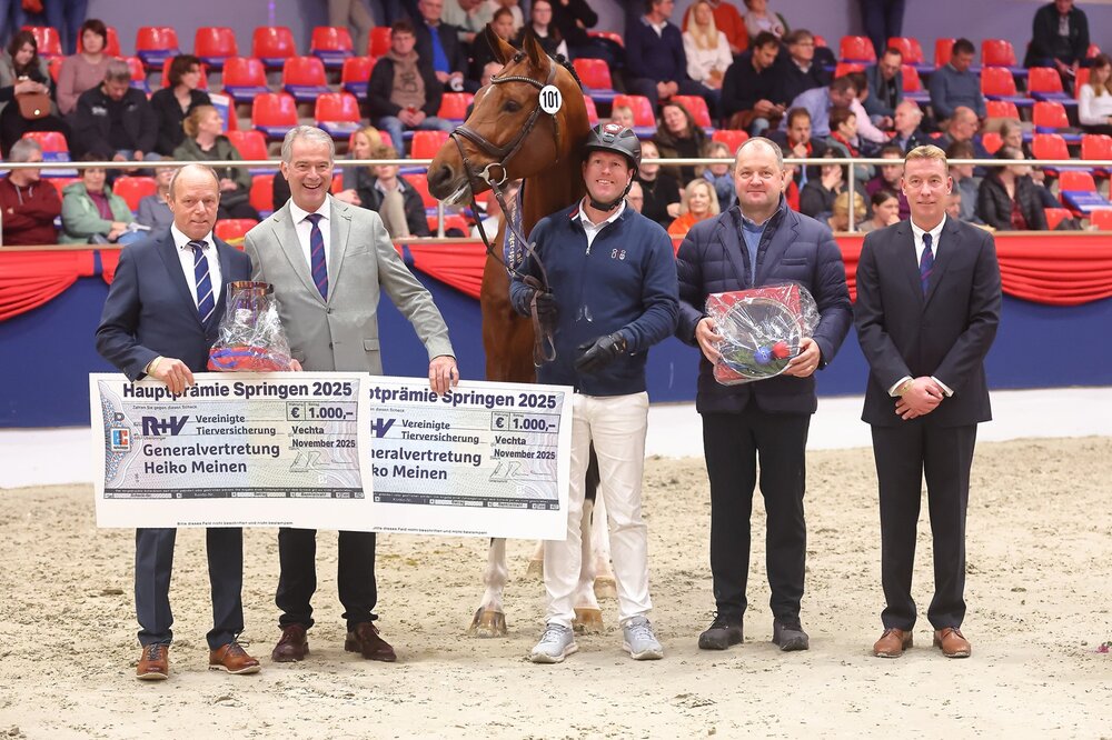 Über den Hauptprämiensieg beim Springpferdezuchtverband Oldenburg-International (OS) durfte sich in diesem Jahr Easy Jet freuen. Der Emerald van het Ruytershof-Cornet Obolensky-Pilot-Sohn stammt aus der Zucht der Zuchtgemeinschaft Blüggel in Hamm und steht im Besitz des Hofes Sosath in Lemwerder. Der Vierjährige startete seine Laufbahn 2024 auf der Oldenburger Körung in Ankum. Schon in der Veranlagungsprüfung in Vechta überzeugte er mit einer Wertnote von 8,2. Bei der HLP-Wertungsprüfung in Rastede erhielt der inzwischen in Springpferdeprüfungen der Klasse A erfolgreiche Hengst unter Hendrik Sosath eine 7,15.