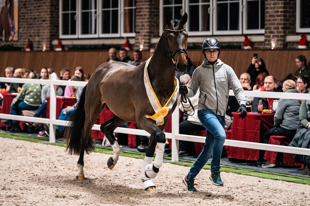 Besonders viel Aufmerksamkeit erhielt die Vorstellung der neuen Hengste für die kommende Zuchtsaison. Hendrik Sosath präsentierte Clear Heart Z (v. Casall SEM) und Caliente Catoki (v. Catoki) am Sprung. Auch die Junghengste beeindruckten an der Hand: Die OS-Prämienhengste Candy Cumano (v. Candy de Nantuel) und United Air (v. United Touch S), der Hannoveraner Prämienhengst Venedig (v. Vivaldos) sowie der KWPN-Hengst Sir Franklin (v. So Perfect) zeigten Typ, Ausstrahlung und Bewegungsqualität.