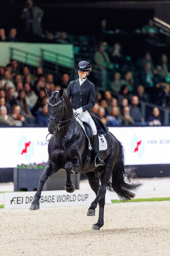 Nach dem Sieg im Weltcupfinale 2025 folgte für Charlotte Fry und den 14-jährigen KWPN-Hengst Glamourdale bei den Europameisterschaften in Crozet ein Einbruch. Glamourdale zeigte sich unzufrieden, die Piaffen gelangen mit Widerstand, und auch im Galopp häuften sich die Fehler. Nun, bei der traditionellen London International Horse Show, folgte der erste Auftritt der beiden nach den Europameisterschaften. Und was soll man sagen? Die beiden „hauten“ einen raus, gar eine ihrer besten Grand-Prix-Prüfungen. Der Lord Leatherdale-Sohn zeigte sich wieder viel geschlossener, im Genick nachgiebiger und aus dem Hinterbein energischer abfußend. So brillierten die Weltmeister von 2022 einmal mehr mit dynamischen Verstärkungen und toll ins Bergauf gesprungenen Serienwechseln. Die Galopppirouetten zeigten sich im Durchsprung verbessert, wenn auch nicht mit dem letzten Risiko. Die Piaffen präsentierten sich wieder energischer abfußend, wenn auch noch nicht ganz sicher ausbalanciert. Alles in allem sicherte sich das Erfolgsduo mit 80,7 Prozent verdient den Sieg. Ein Ausrufezeichen setzte auch Charlotte Dujardin, die mit der elfjährigen All at Once-Tochter Alive and Kicking auf Rang zwei folgte (76,5 Prozent). Nach ihrer Sperre feierte Dujardin in London ihr Weltcup-Debüt und überzeugte einmal mehr mit starkem Prüfungsreiten. Die beiden punkteten mit energisch abfußenden Piaffen und Passagen. Bei Letzterem könnte die Stute aus der Zucht von Michael Schulte teilweise noch gelassener aushalten. Weitere Highlights bildeten die Serienwechsel und die Galopppirouetten. Von diesem Paar wird man in Zukunft sicherlich noch mehr hören! Eine technisch sichere Runde zeigten Becky Moody und ihr sympathischer KWPN-Wallach Jagerbomb (75 Prozent). Sie komplettierte das britische Podest und verwies Isabel Freese mit Total Hope OLD (74 Prozent), die heute unter anderem Fehler in den Einerwechseln hatte, und Susan Pape mit Harmony’s Giulilanta (72 Prozent) auf die weiteren Plätze. Der einzige deutsche Teilnehmer, Moritz Treffinger, sicherte sich mit Cadeau Noir Rang sieben.